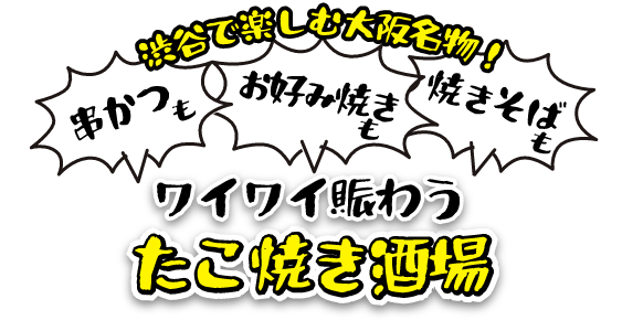 渋谷で深夜にお得に飲むなら当店へ!平日限定(月〜木)の23時からは、ビールを含む1時間飲み放題がなんと770円(税込)!たこ焼きや串かつと一緒に、気軽に楽しんでいただけます。※おひとり様につき1フードのご注文をお願いいたします。