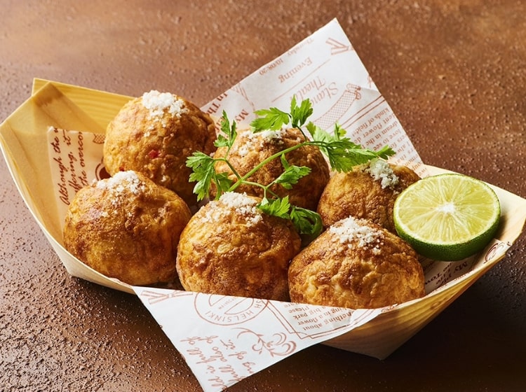 大阪・道頓堀で行列の絶えない「くれおーる」自慢の大阪名物たこ焼き。外はカリッと香ばしく、中はトロッととろける食感が特徴です。ほかにも多彩な創作たこ焼きをご用意しており、なかでもトリュフ塩のたこ焼きはぜひ味わっていただきたい逸品です。